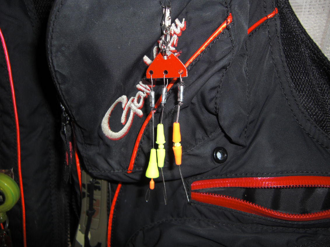 先日のウキゴムホルダーの改良版です、と言ってもホルダーが一つ増えただけですが、それと取り付け用の孔も大きくして前のナスカンで取り付けるのをやめて、小さなネジで取り付けるようにしました。