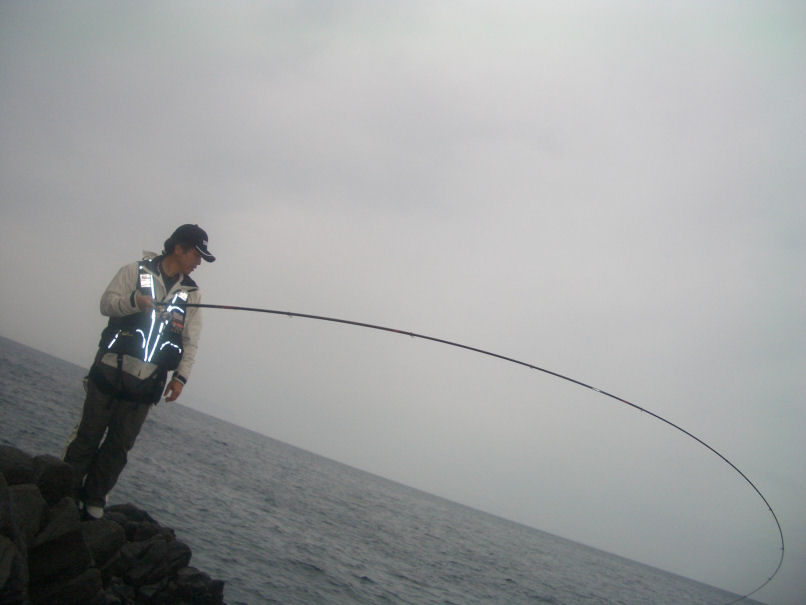 なります。釣果のほうは明るいうちに足の裏から30cmのクロを数尾釣りあげ日が暮れて暫くは何も釣れません、その後30cmくらいのイサキを2尾釣って11時ごろ相棒のトモゾーが43センチくらいのクロを釣り上げたので場所をクロの本命ポイントに変わり、暫くして小さなアタリがあり合わせると生体反応はあるけど暴れたりせず重いだけで浮かせてから慌てたように逃げ回り始めました、ようやくタモに収め見てみると大きくてびっくりです、メジャーを当てると50cmはありそうです。 この後トモゾーが45cmのチヌを追加して朝までこれといったアタリも無くなり納竿です。