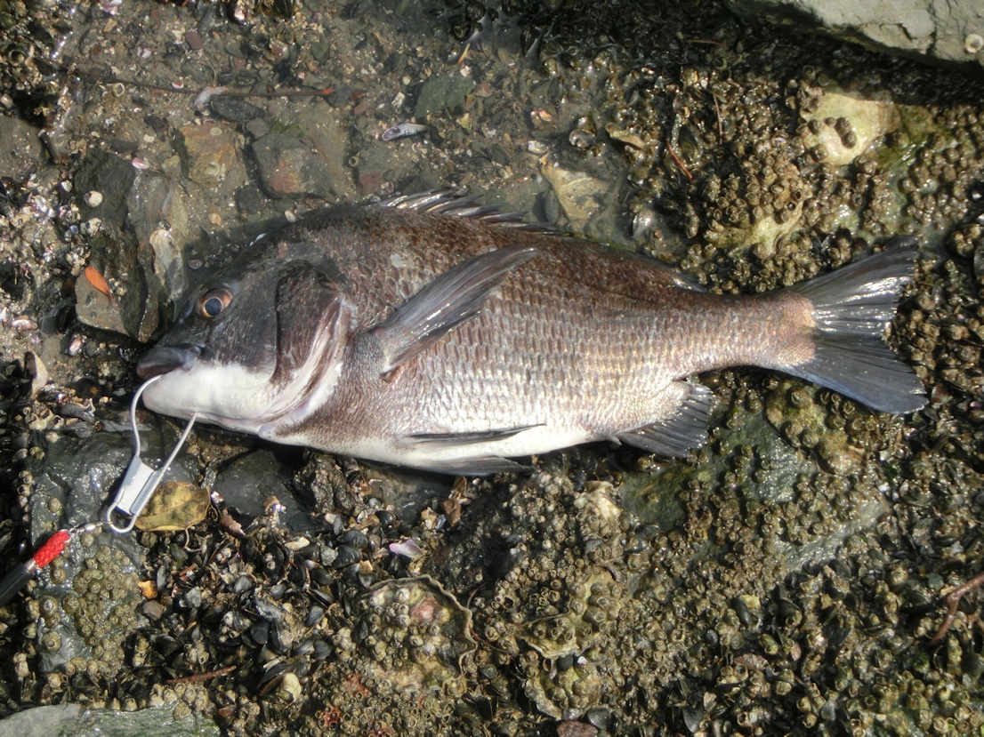 遣り取りしている時は大きそうな感じでしたが、釣り上げてみるとギリギリ40㎝のチヌでし