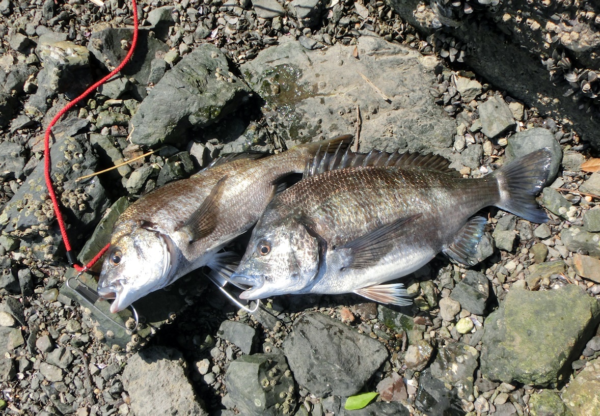 徐々に潮も早くなり全遊動では仕掛けの入りも悪くなり、がん玉を段打ちしたり遊動仕掛けに替えたりと色々手を替え品を替えやってみますがとうとうクロもチヌも釣れることなく時間となってしまいました。