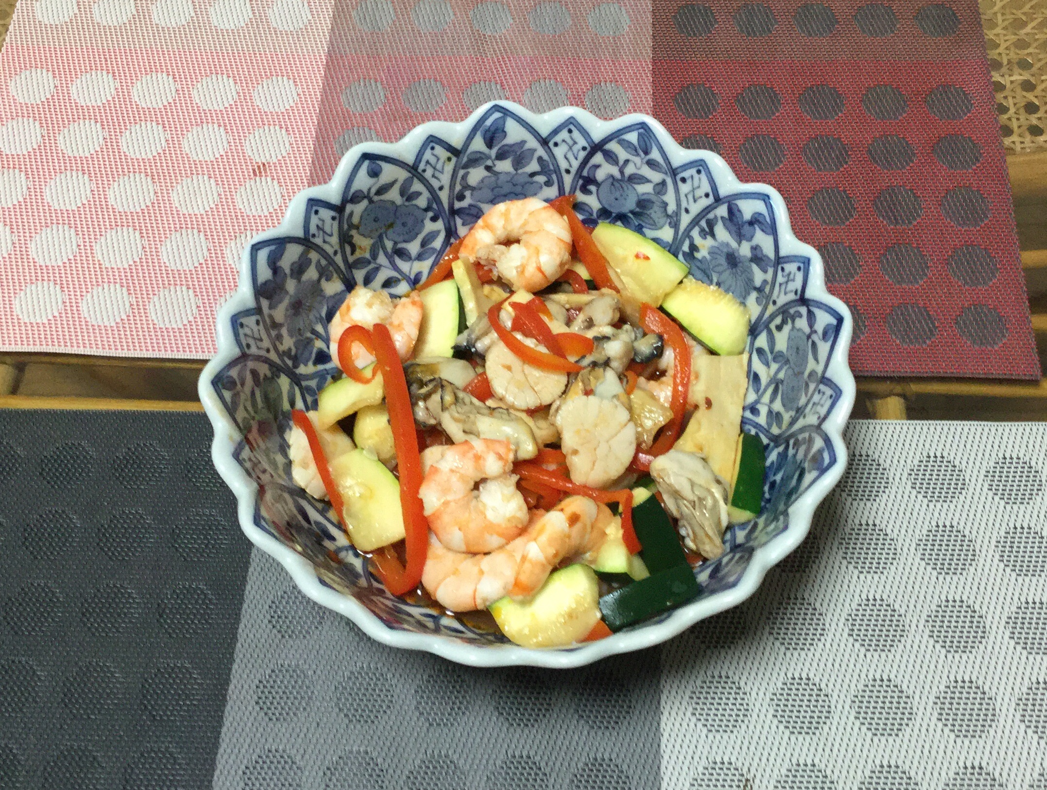 今日は海鮮の豆板醤和えを作りました。