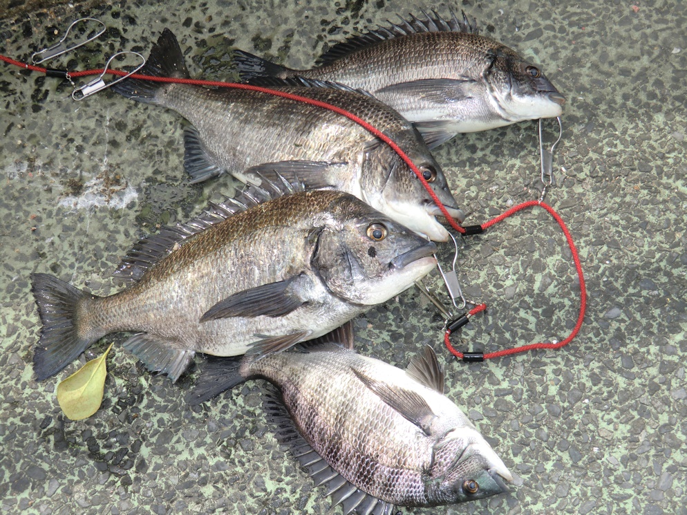 このバラシが響いたのかその後はアタリも途絶えてチヌを一匹追加して10時を過ぎると全くアタリも無くなり2時の回収までベラが数匹釣れただけで終わりでした。