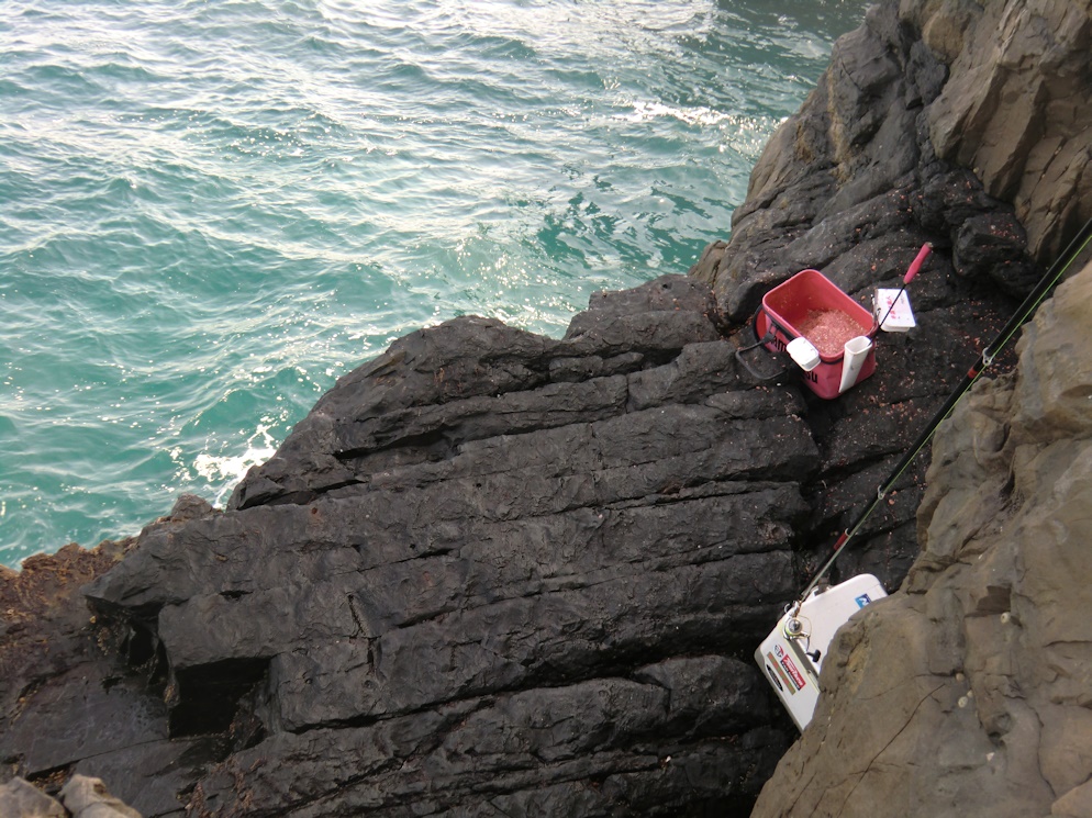 すぐに夜釣りを始めるつもりでしたが結構なうねりが有り、足場も斜めであちこちに海苔が付いていたので安全を考え明るくなってから釣ることにしました。